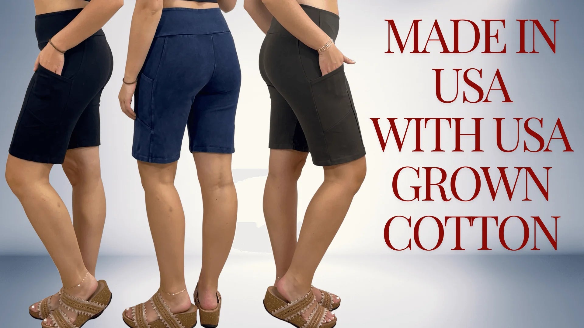 Tummy Control Mineral Washed Capri Leggings Made in USA