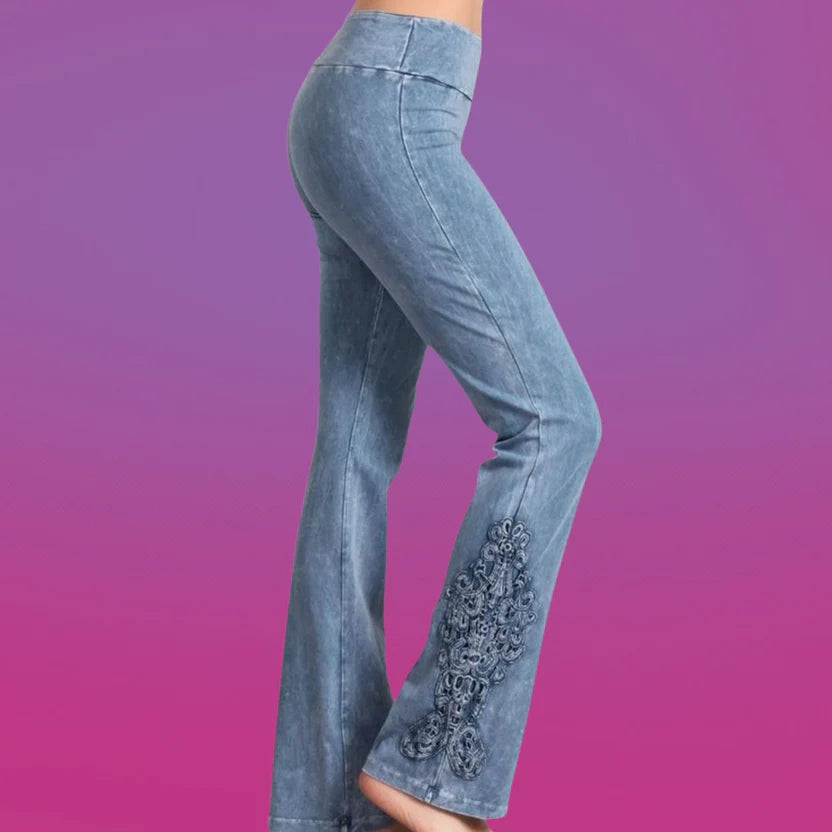 Side Crochet Lace Long & Lean Flare Bottom Jeggings Made in USA