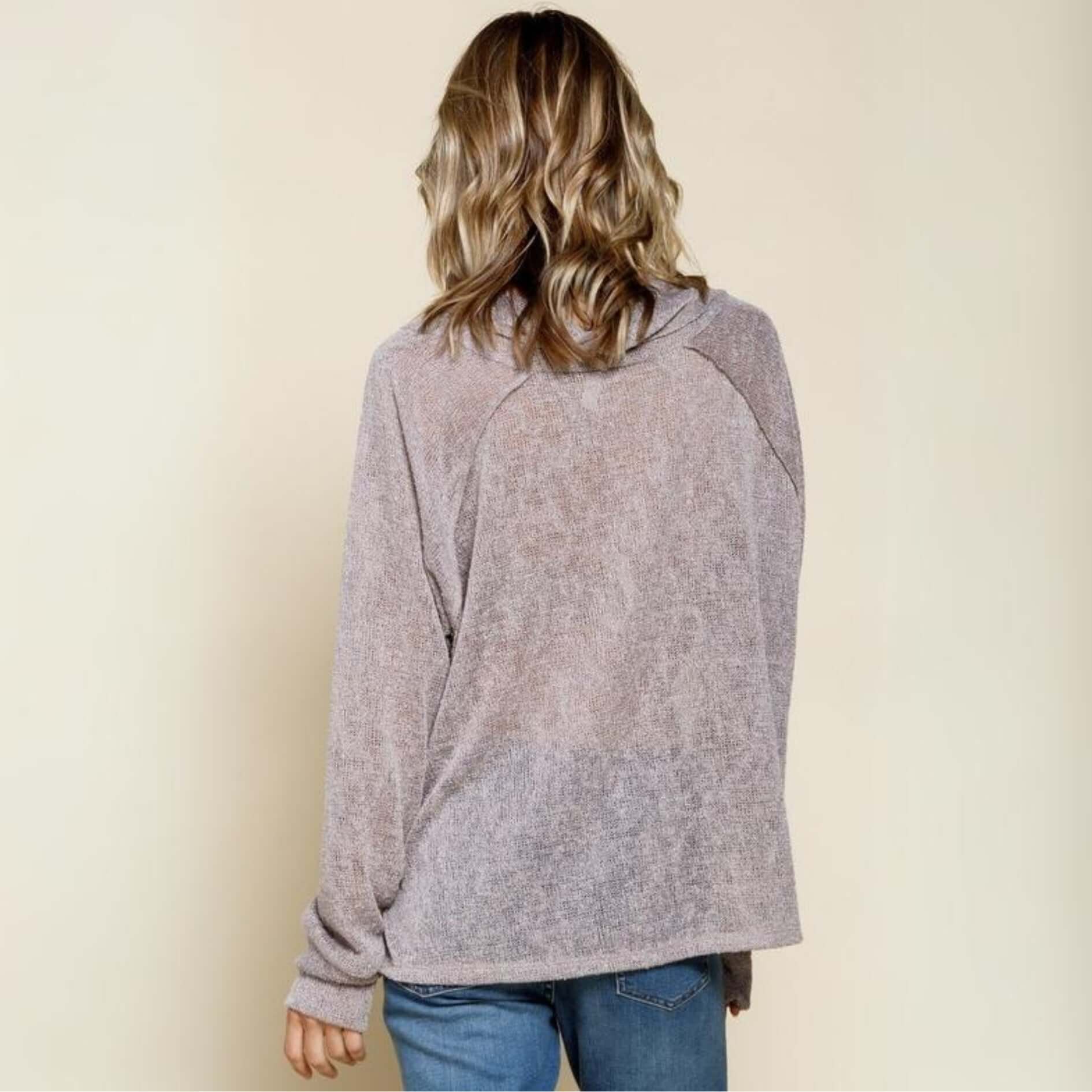 Introducing our Lightweight Low Gauge Cowl Neck Knit Top - the perfect blend of comfort and style. Made in the USA, this top features a slouchy sheer material and relaxed fit for a laid-back look. With raglan long sleeves, side slits, and a high-low straight hemline, you'll never want to take it off!