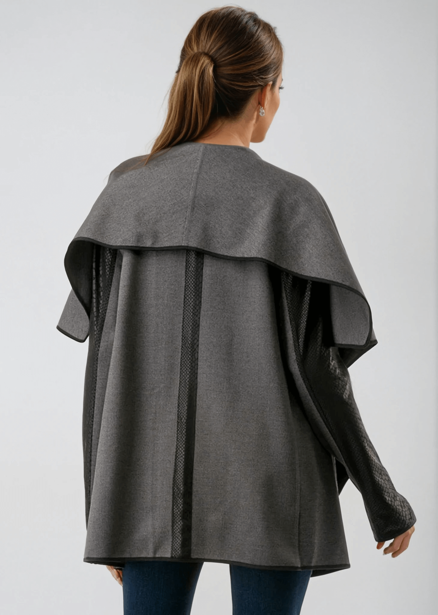 - Snaps on Lapel & Shoulders to Wrap Around Neck To Wear Closed in Cool Weather