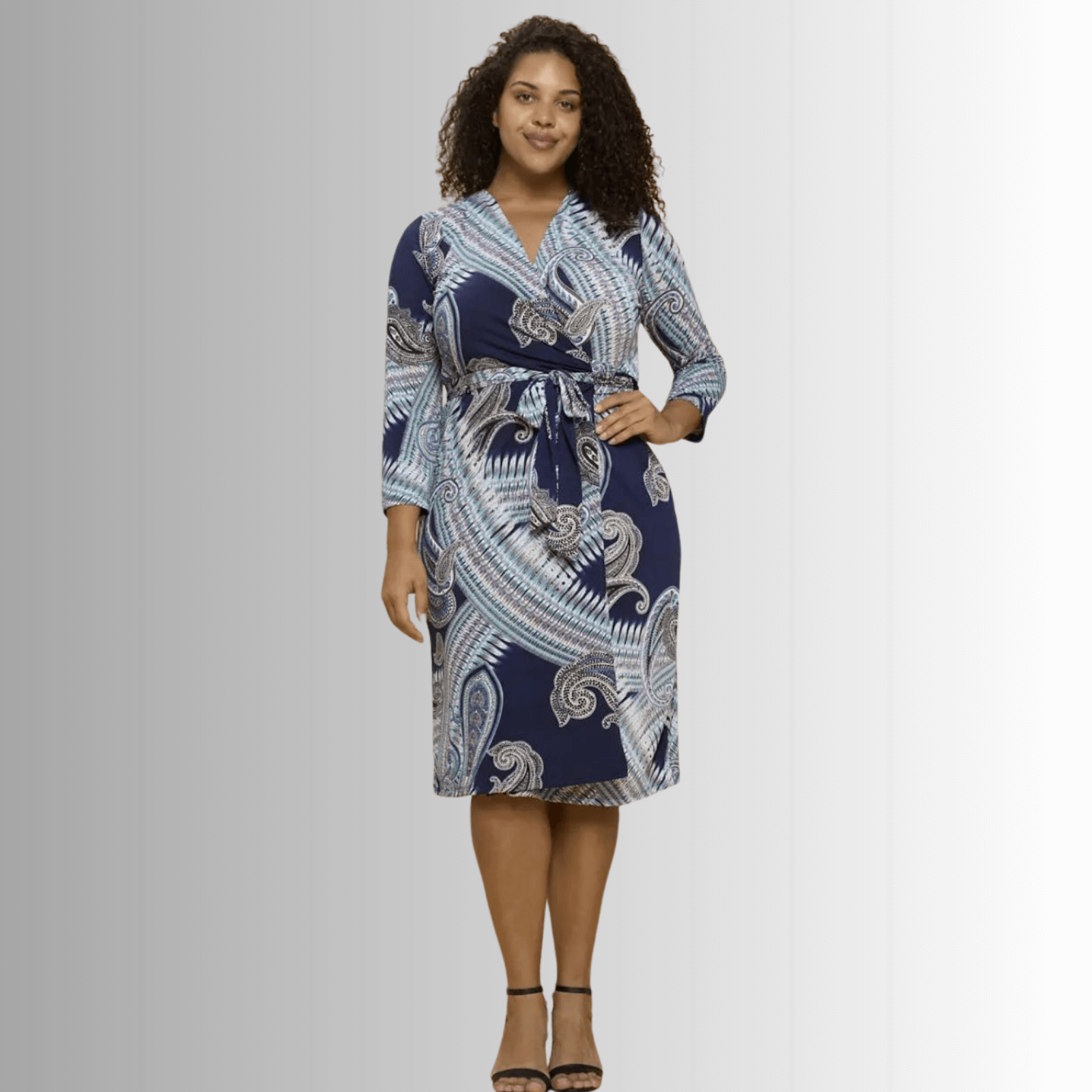 Effortless Beauty Navy Printed Wrap Dress Plus Size