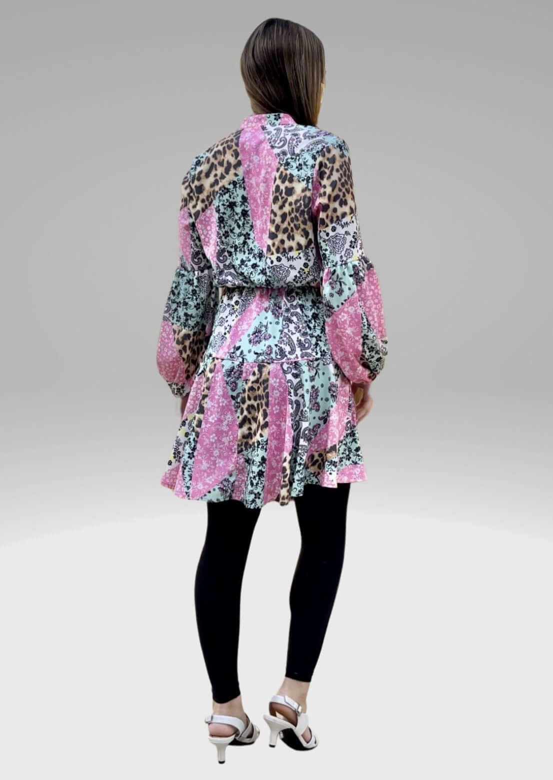 Show off your unique style with this Colorful Mixed Media Print Tunic Dress. Crafted in the USA for lasting quality, it features an elastic waist, puff sleeves and a button front. The blend of paisley, floral and leopard prints offer endless styling options - wear it as a dress or a tunic with leggings. Feel confident, fashionable, and ready to make a statement!