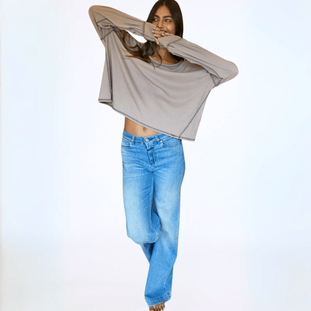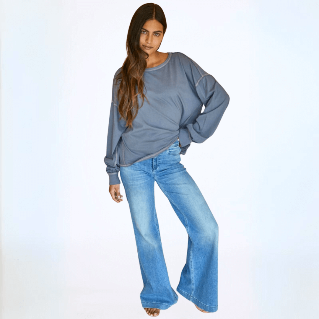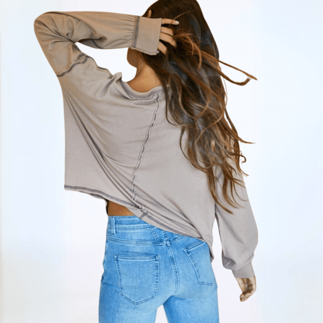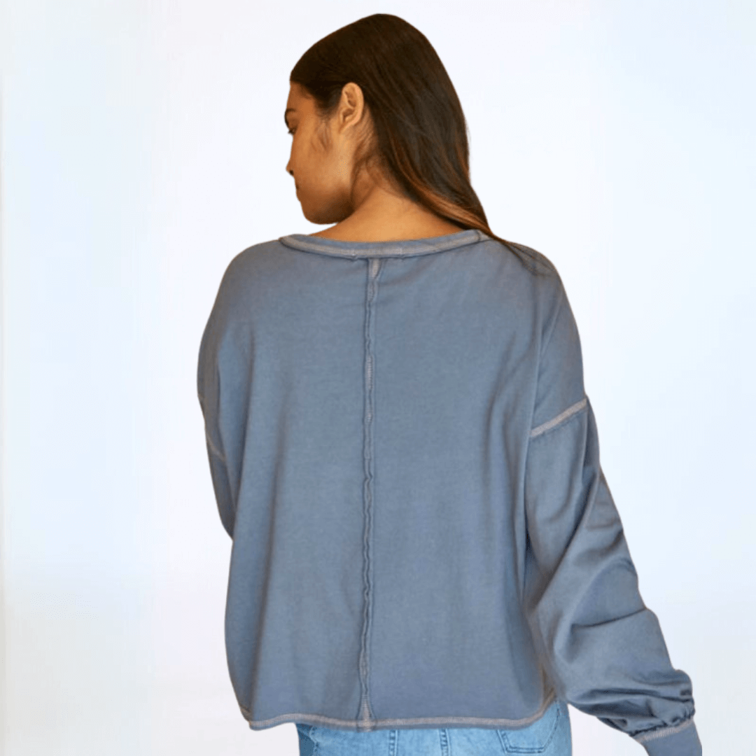 Expertly crafted in the USA, the Owen Oversized Top features a boxy stitch detail for a modern yet relaxed fit. The garment dyed fabric offers a soft feel, while the raw edge and contrast stitch details add a touch of edginess. With long sleeves, a wide round crew neck, and banded cuffs, this top is perfect for any occasion. Available in graphite and taupe.