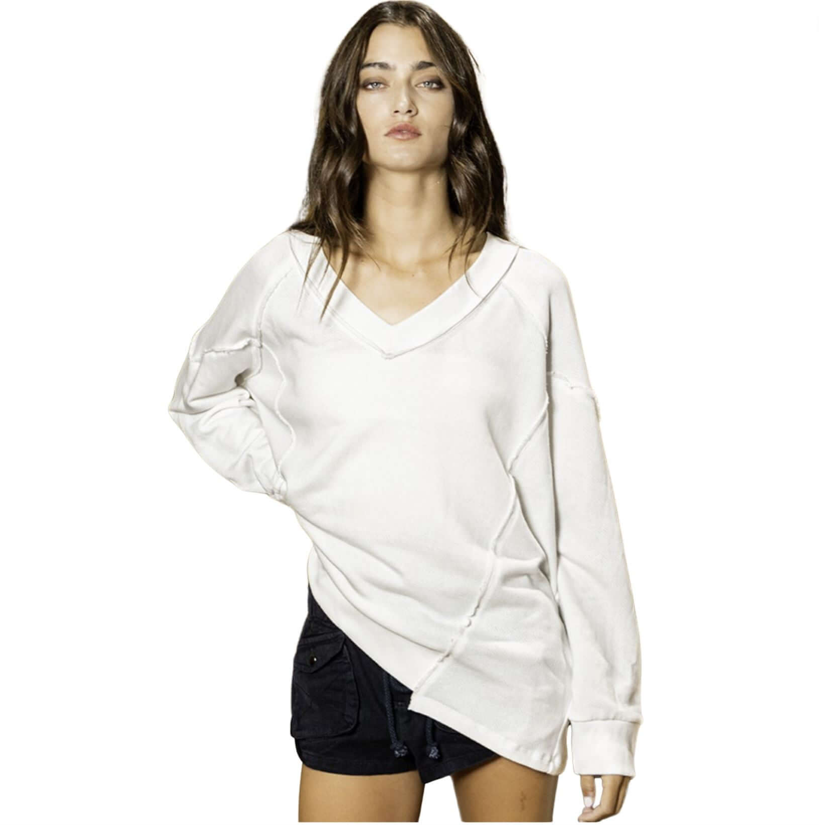 Elevate your style with the Weekend Warrior Sweatshirt. Featuring oversized solid raw edge detailing, long sleeves, V-neck, and a drop shoulder, this modern top is available in both black and white. Elevate your look and stay comfortable with the Weekend Warrior.